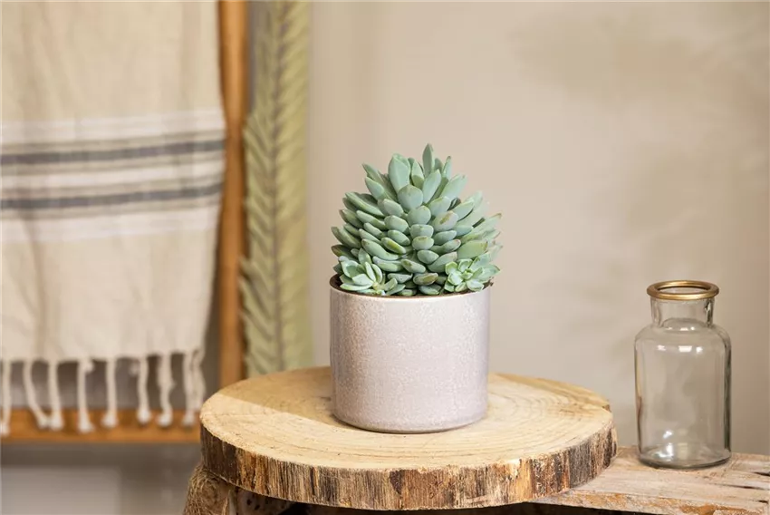 Ein gesundes und üppiges Wachstum steht und fällt mit dem richtigen Substrat. Deshalb gehört zum Kakteen und Sukkulenten pflegen in erster Linie, das richtige Zuhause zu finden. Das sollte an die natürliche Umgebung der Wüstenbewohner angepasst sein. Was das bedeutet? Wo viele andere Pflanzen dankend ablehnen, freuen sich Kakteen und Sukkulenten über einen sandigen, nährstoffarmen und eher trockenen Untergrund. Dafür kann man entweder spezielle Kakteenerde verwenden, oder man mischt sich das ideale Substrat aus verschiedenen Materialen zusammen. In jedem Fall sollte man darauf achten, dass das Gefäß, indem die Pflanzen wachsen, Abzugslöcher enthält. Zum Kakteen und Sukkulenten pflegen gehört nämlich auch das richtige Gießverhalten. Und Staunässe gilt es dabei unbedingt zu vermeiden. Mit der kommen die Gewächse trotz ihrer Robustheit nicht zurecht und bevorzugen lieber ein trockenes Zuhause.