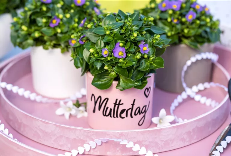 Blumen zum Muttertag haben eine lange Tradition. Kein Wunder, schließlich freuen wir uns alle über eine blumige kleine Aufmerksamkeit. Das kann ein frisch gepflückter Blumenstrauß vom Feld sein, aber auch ein professionell gebundener Strauß vom Floristen. Oder eine Topfblume, die beim Gärtner um die Ecke so gestrahlt hat. Für welche Blumen zum Muttertag man sich auch entscheidet, sie alle sind eine gute Idee und haben teilweise ganz besondere Bedeutungen. So drücken rote Rosen tiefe Liebe aus und symbolisieren damit auch die Verbindung zwischen Eltern und ihren Kindern. Rote Rosen sind nicht immer nur etwas für Verliebte! Auch Mama freut sich über die Königin der Blumen. Oder wie wäre es mit einer Hortensie? Seit vielen Jahren steht sie für Dankbarkeit und gerade die passt ja perfekt zum Muttertag. Ob als Strauß oder im Topf, Hortensien werden sehr gerne zum Muttertag verschenkt. Wer seiner geliebten Mama aber eine ganz besondere Aufmerksamkeit schenken will, der findet eine Iris. Sie steht für Glück, Hoffnung und Reichtum und wird mit Sicherheit die richtige Botschaft überbringen. Und für alle, die sich nicht entscheiden können: Es gibt noch so viel mehr Blumen zum Muttertag!